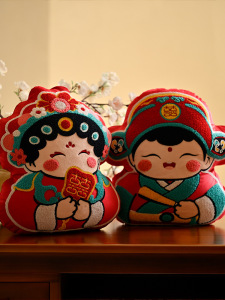 新婚陪嫁压床娃娃喜字一对结婚送人新娘礼物红色抱枕婚庆公仔婚房