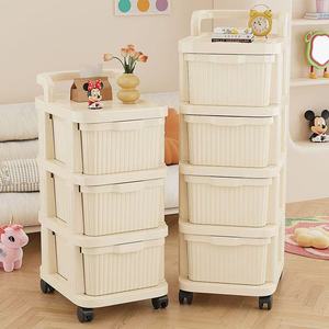 抽屉式透明置物架落地式小推车家用多层收纳架可移动零食储物架