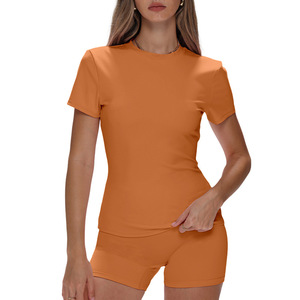 彩珠秋季跨境新款8455短袖透气瑜伽上衣运动跑步速干高强度健身衣
