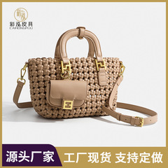 2025新款潮时尚女包手工编织托特包单肩包短途旅行包编织单肩包