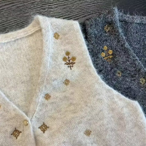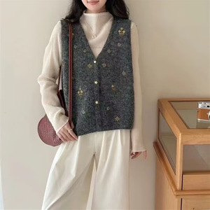 2025早秋新款V领重工刺绣针织马甲女无袖外搭背心开衫马夹女潮