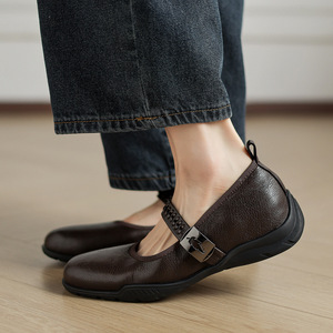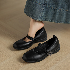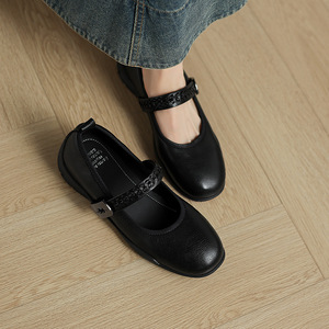 颜值舒适都要!超软全羊皮厚底运动玛丽珍2025圆头中跟真皮单鞋女