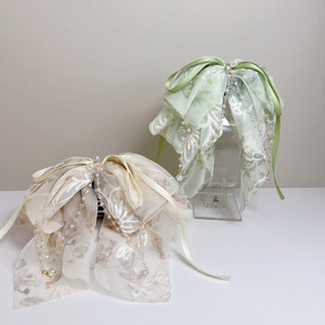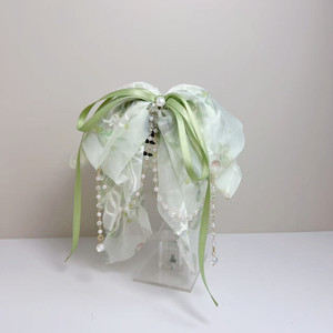 刺绣蝴蝶结珠链马尾夹【果绿色】