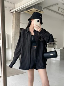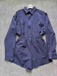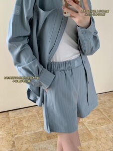 ALO时尚休闲衬衫短裤条纹慵懒简约套装(源头工厂现货)