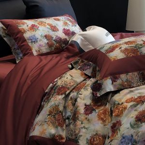 柔美黄金棉丨四季新疆阿克苏长绒棉S100全棉四件套美式花卉宽边款