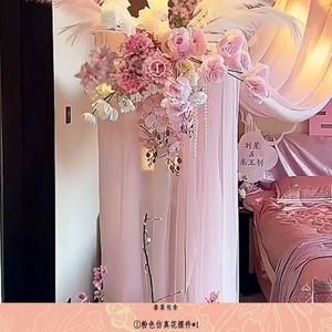【主图款】粉色繁华KT床头布置