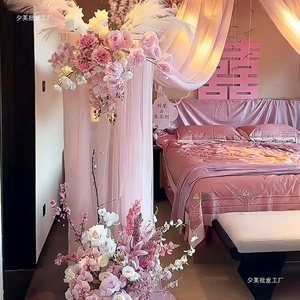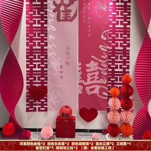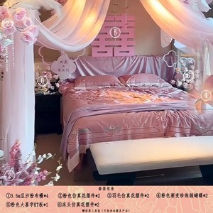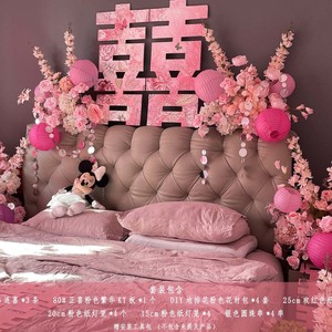 2025粉色婚房氛围布置套装结婚装饰女方卧室喜字KT假花花摆设