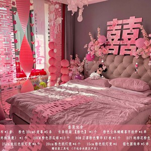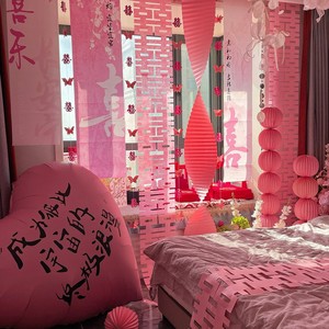 【主图简约版】粉色花婚房装扮3件套