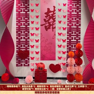 【蝴蝶喜字】条幅背景墙套装---含地面装饰