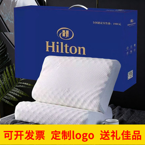 希尔顿天然乳胶枕护颈枕头成人枕芯礼盒装团购礼品枕印logo代发
