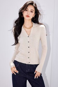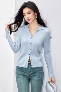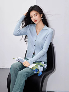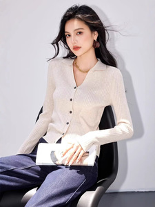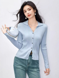 哥家商场同款女装2025法式polo翻领针织秋修身薄内搭打底衫V领
