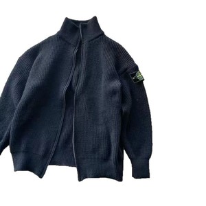 跨境石头开衫毛衣秋冬季重磅情侣针织纯色立领宽松拉链针织衫男女
