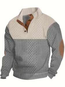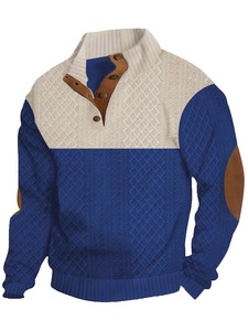 2025春秋季跨境欧码男士户外休闲纽扣立领灯芯绒运动卫衣休闲时尚