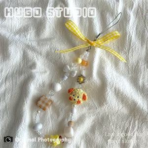 可爱蛋黄吐司狗狗串珠手机链ccd相机挂件便携手机壳挂绳女款