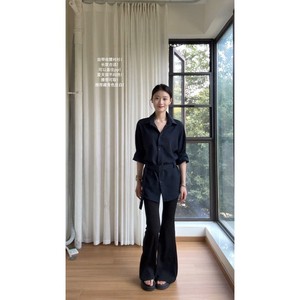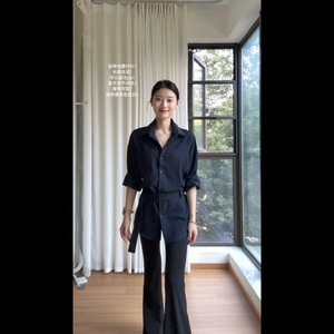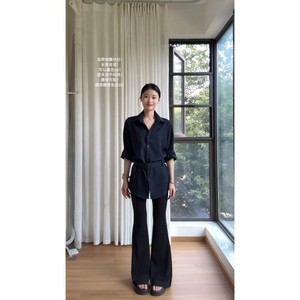 时尚干练气质通勤风穿搭休闲衬衫上衣修身微喇叭长裤潮