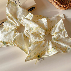 超大黄色碎花方巾大肠发圈女甜美扎头发头绳气质绑低马尾头花发绳