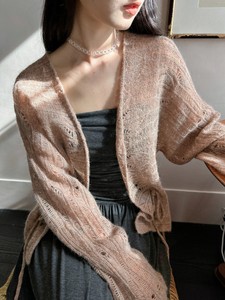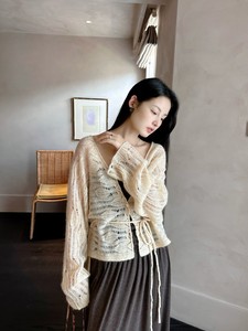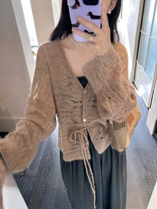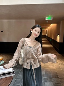 DIGM | 2025秋季极简镂空钩花马海毛羊毛针织衫系带毛衣女A3M009