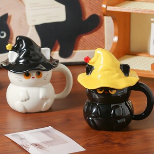 万圣节幽灵陶瓷马克杯创意卡通魔法帽猫咪杯子家用办公情侣水杯
