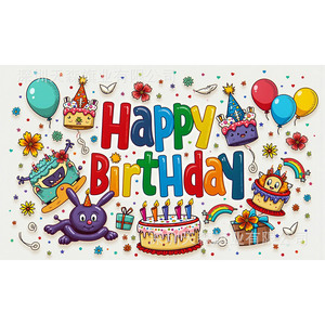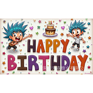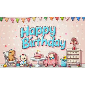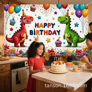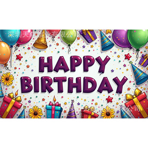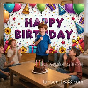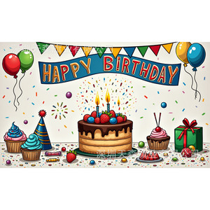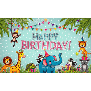跨境爆款儿童生日背景布活动派对风可爱卡通派对拍照装饰布