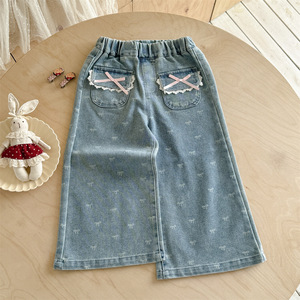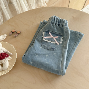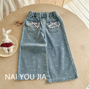 奶油喇叭裤子春秋季2025新款洋气宝宝长裤小童秋款儿童秋装牛仔裤