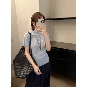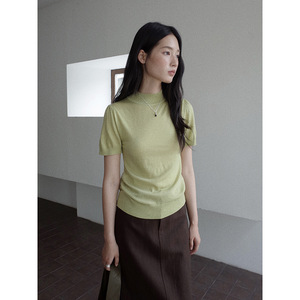 MMC短袖针织衫女秋季新款显瘦泡泡袖设计感高级羊毛半高领打底衫