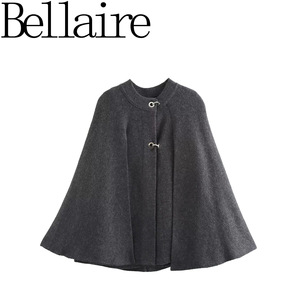 ZA外贸批发 欧美风法式女装斗篷设计圆领长袖针织外套 2756115