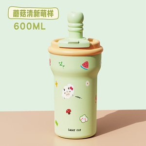 高颜值ins小众女生花茶杯新款保温杯316陶瓷内胆便携吸管杯水杯