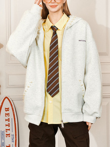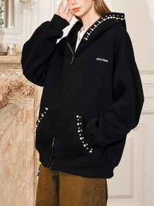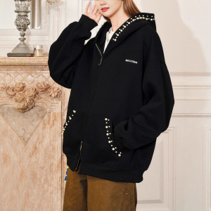 重磅珍珠钉珠开衫外套女2025春秋季新款字母刺绣潮牌休闲连帽卫衣