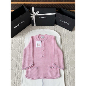 深圳南油正确高版本CH家25春夏新款珍珠装饰圆领长袖针织衫上衣