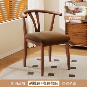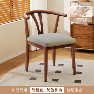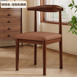 【升级乳胶款】胡桃色+咖色棉麻牛角椅