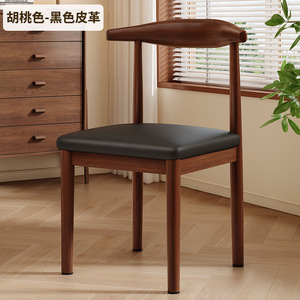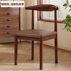 【升级乳胶款】胡桃色+咖色耐磨皮牛角椅