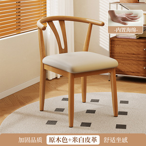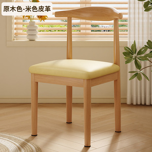 【升级乳胶款】原木色+米色耐磨皮牛角椅
