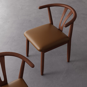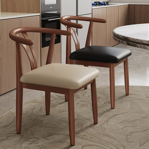 太师椅家用餐椅现代简约餐厅餐桌凳子靠背商用牛角实木铁艺茶椅