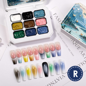 固态九宫格拍拍胶浓稠高饱和度指甲油胶渐变腮红彩绘晕染美甲胶