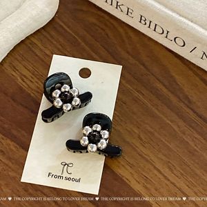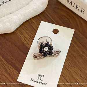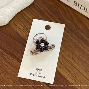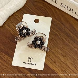 韩国新款银色串珠花朵黑色发夹 时尚高级感抓夹鲨鱼夹侧边夹发饰