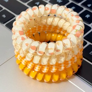 可爱夏日活力橙色格纹碎花电话线发圈高弹力耐用日常无痕少女发饰