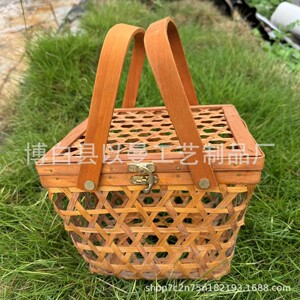 竹编手工复古编织篮创意简约送礼收纳植物礼盒手提装饰工艺品