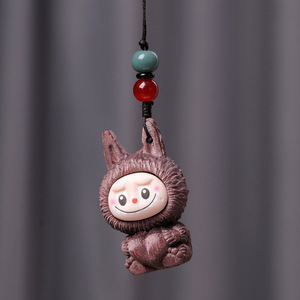 血柏木坐姿爱心 钥匙扣挂件木雕刻文玩可爱卡通挂饰流苏包挂