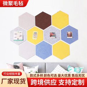 跨境毛毡板六边形自粘墙贴毛毡六角形展示板背景墙彩色留言板隔音