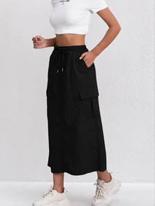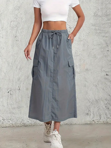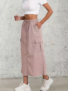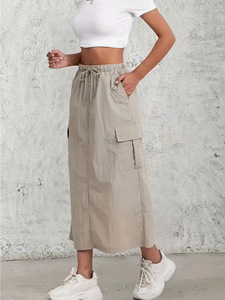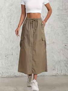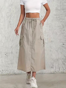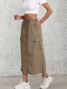 美式复古工装裙女春秋2025新款松紧高腰a字显瘦中长款开叉半身裙