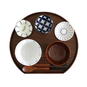 木质日式托盘家用托盘餐具套装一人食不规则圆形托盘早餐盘