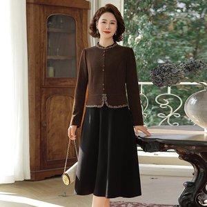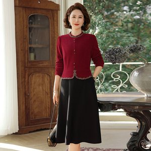 妈妈春秋连衣裙2025新款40岁50中老年洋气长袖假两件时尚秋天裙子
