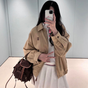 早秋新款M家学院风字母贴布刺绣百搭显瘦翻领夹克外套男女同款