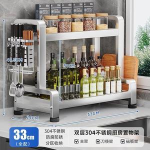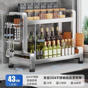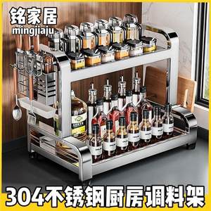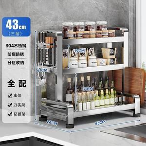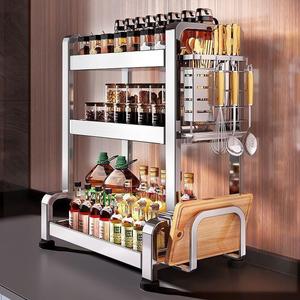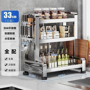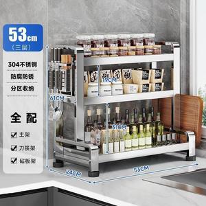 【精选联盟】304不锈钢特厚加厚厨房调料品置物架台面多层收纳架