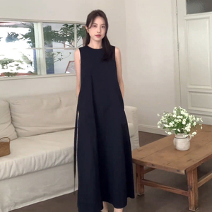 赫本风黑色无袖背心连衣裙子女夏季2025新款茶歇法式气质宽松长裙