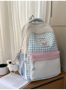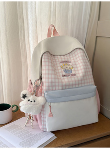 日系新款高颜值清新甜美甜美格子背包初高中生轻便大容量双肩包