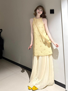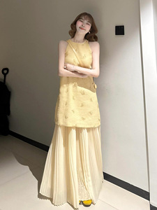 法式无袖背心连衣裙子女2025新款初夏穿搭超好看独特别百褶裙套装