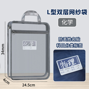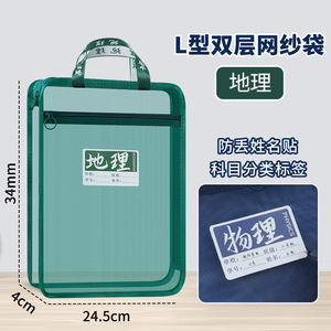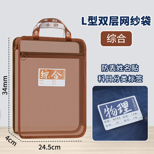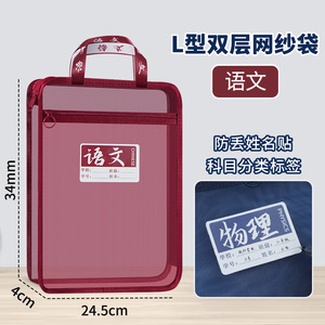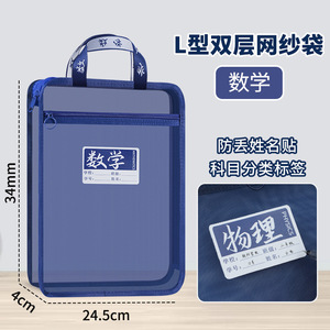 L型科目多层大容量文件袋学生学科分类课本试卷收纳袋A4透明网纱