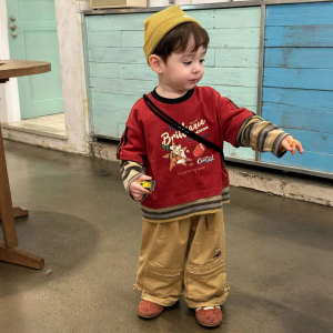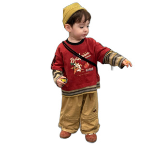 男童卫衣儿童春秋装2025新款洋气假两件打底衫女宝宝圆领休闲上衣