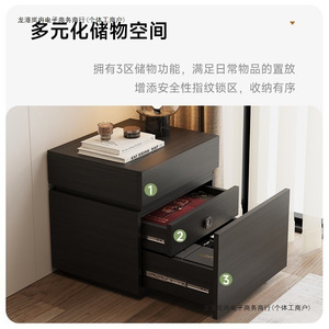 储物柜指纹锁款床边柜酷米实木床头柜意式极简卧室带隐藏暗格抽屉